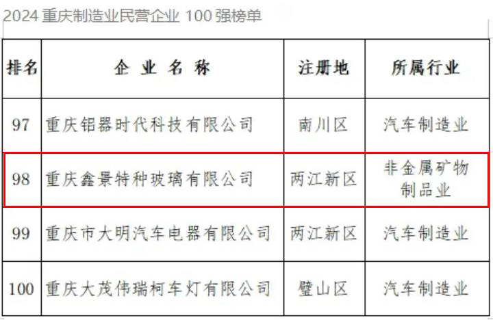 重慶制造業(yè)百?gòu)?qiáng)企業(yè)是地區(qū)制造企業(yè)的標(biāo)桿和推動(dòng)經(jīng)濟(jì)發(fā)展的中流砥柱,也是窺見(jiàn)制造業(yè)轉(zhuǎn)型發(fā)展的“風(fēng)向標(biāo)”。公司十余年堅(jiān)持創(chuàng)新引領(lǐng)的發(fā)展道路,專(zhuān)注高端特種玻璃新材料領(lǐng)域的研發(fā)與應(yīng)用,實(shí)現(xiàn)了關(guān)鍵技術(shù)突破,產(chǎn)品贏得了市場(chǎng)的青睞。